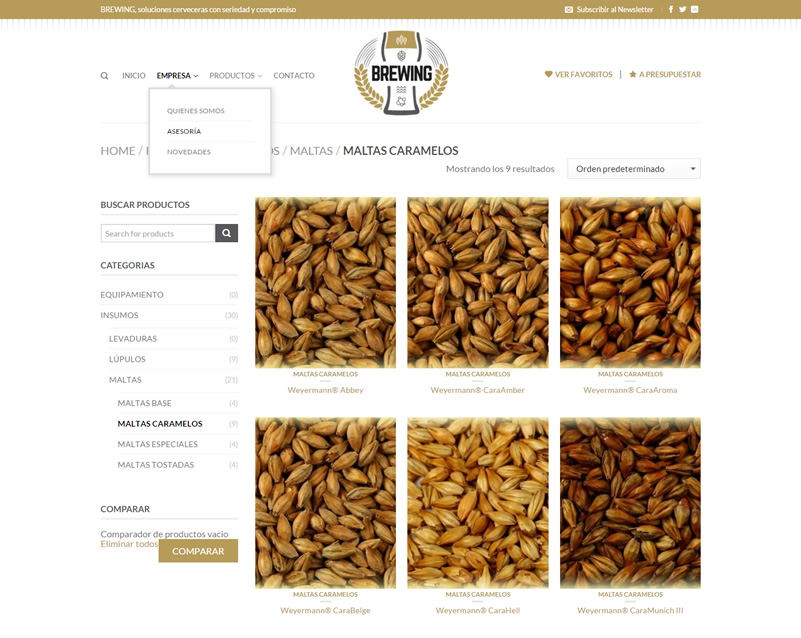 Sitio Institucional de la maltera. Administración de contenidos y productos. Carrito de compras.